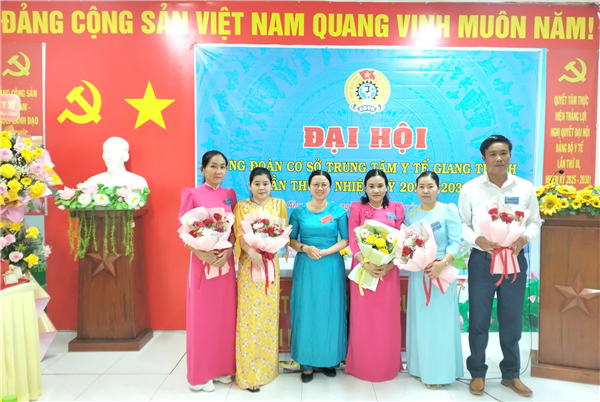 Đại hội đã bầu ra Ban Chấp hành Công đoàn cơ sở Trung tâm Y tế Giang Thành lần thứ V, nhiệm kỳ 2025 – 2030 gồm 05 đồng chí và bầu 02 đại biểu chính thức và 01 đại biểu dự khuyết tham dự Đại hội đại biểu Liên đoàn lao động tỉnh An Giang, lần thứ I, nhiệm kỳ 2025 - 2030. Tại phiên họp thứ nhất Ban Chấp hành Công đoàn cơ sở đã bầu Chủ tịch, Phó chủ tịch, UBKT và Chủ nhiệm UBKT; Đồng chí Hoàng Thị Trang – Trưởng Khoa Chăm sóc sức khoẻ sinh sản và Phụ sản – Ngoại – Phẩu thuật – Gây mê hồi sức được bầu chọn giữ chức danh Chủ tịch Công đoàn cơ sở; Đồng chí Nghiêm Thị Huệ - Phó Khoa Khám bệnh – Tư vấn và điều trị nghiện chất – Răng hàm mặt – Mắt – Tai mũi họng – Y học cổ truyền và Phục hồi chức năng giữ chức vụ Phó Chủ tịch Công đoàn Trung tâm Y tế Giang Thành lần thứ V, Nhiệm kỳ 2025 – 2030.