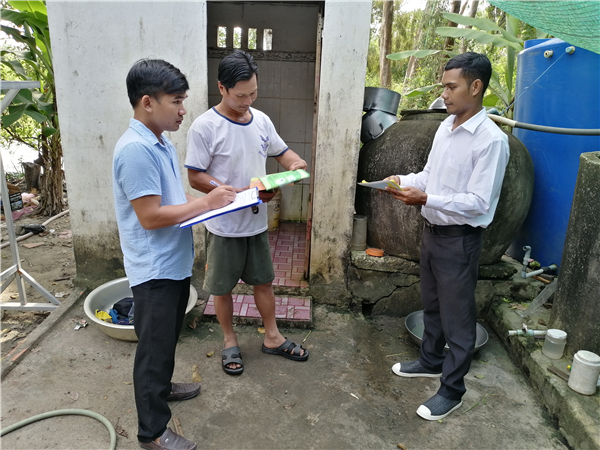 BS. Trần Khắc Hảo - Trạm Y tế Vĩnh Điều thực hiện giám sát mật độ lăng quăng tại hộ gia đình