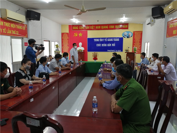Đồng chí Ong Văn Ngay - Bí thư Huyện ủy Giang Thành thăm hỏi, chúc tết và tặng quà tại Trung tâm Y tế Giang Thành, sáng ngày 17/01/2022
